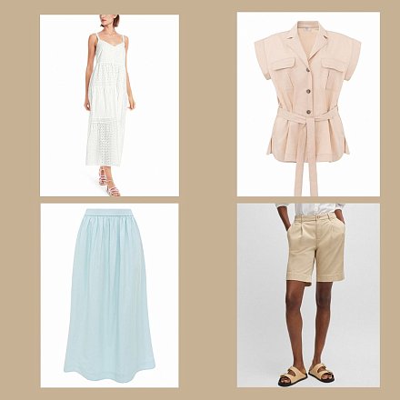 Никакого полиэстера под палящим солнцем! Идеальные ткани для лета — лен, хлопок, вискоза, тенсел. Они «дышат», красиво драпируются и не слишком сильно мнутся. Для вечера — немного атласного шёлка: положите в чемодан майку, рубашку или платье-комбинацию. Выбирайте ткани, которые выглядят хорошо даже после дороги.